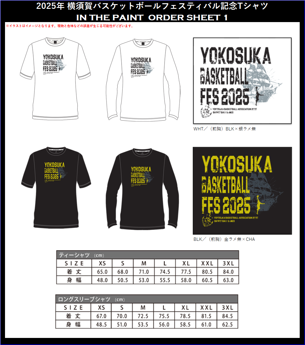 2025協会フェスティバル 記念Tシャツ 販売 横須賀バスケットボール協会ホームページより転載。どなたでも申し込み可能です。 <注文方法 抜粋>